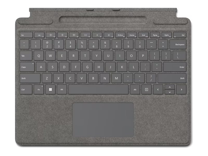 | Popis výrobku | Microsoft Surface Pro Signature Keyboard - klávesnice - s akcelerometr, touchpad, zásobník pro nabíjení a skladování Surface Slim Pen 2 - QWERTY - americká - platina Vstupní zařízení |