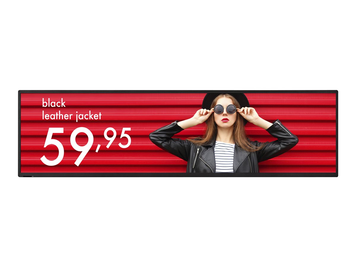 Tento prodloužený displej, který poskytuje prostorově efektivní vizualizaci ve stísněných prostorech, jako jsou chodby a regály v prodejnách, nabízí výrazný ultra širokoúhlý poměr stran 16:4. Zatímco vysoká přizpůsobivost zahrnuje orientaci na šířku i na výšku, což je ideální pro oblast s omezeným prostorem, tvorba obsahu zůstává nadále jednoduchá a nenáročná. Obsah je ostrý a jasný s přesvědčivou čitelností i v pronikavě osvětleném prostředí s vysokou úrovní jasu 700 cd/m² v kombinaci s povrchem tlumícím světelné odrazy. Moderní tenký design vytváří elegantní digitální povrch, který se dokonale hodí do okolní architektury a bezproblémově zapadá do každého prostředí.