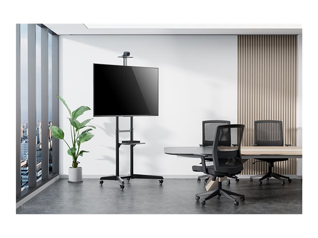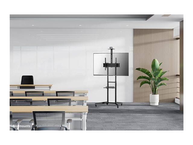 Neomounts FL50-550BL1 je mobilní podlahový stojan pro ploché obrazovky do 70" s maximální nosností 50 kg. Podlahový stojan má čtyři výšková nastavení a možnost náklonu (17°) pro vytvoření optimálního pozorovacího úhlu. Kromě toho je stojan FL50-550BL1 vybaven samostatnou výškově nastavitelnou podpěrou pro kameru a policí pro média, obě s maximální nosností 5 kg.