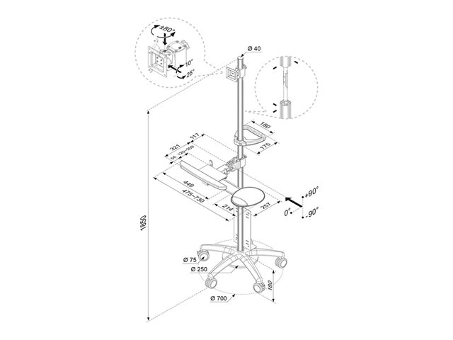 | Popis výrobku | Neomounts FPMA-MOBILE1800 vozík - pro LCD displej / klávesnice / myš / CPU - stříbrná |