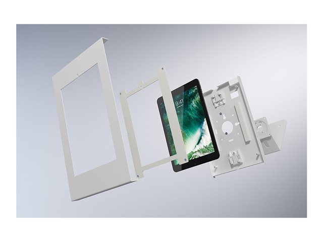 Držák na tablet je vybaven zámkem proti krádeži a lze jej instalovat na pracovní desku i na stěnu. Protiskluzové podložky chrání tablet před případným poškrábáním a ocelová konstrukce zajišťuje bezpečné a pevné umístění. Systém vedení kabelů umožňuje vést kabely uvnitř pouzdra.
