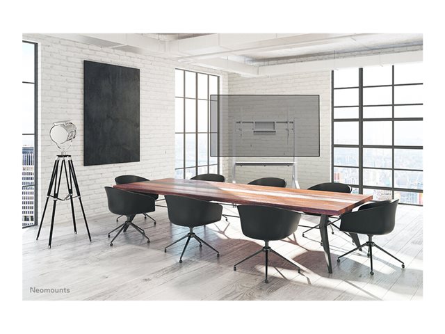 Neomounts FL50-525WH1 MOVE Go je mobilní podlahový stojan pro ploché obrazovky do velikosti 86" s maximální nosností 76 kg. Díky robustní konstrukci a přiloženým stabilizátorům dotykové obrazovky je MOVE Go dokonalým řešením pro dotykové obrazovky. Podlahový stojan je manuálně nastavitelný ve 4 přednastavených výškových polohách od 106 do 136 cm.
