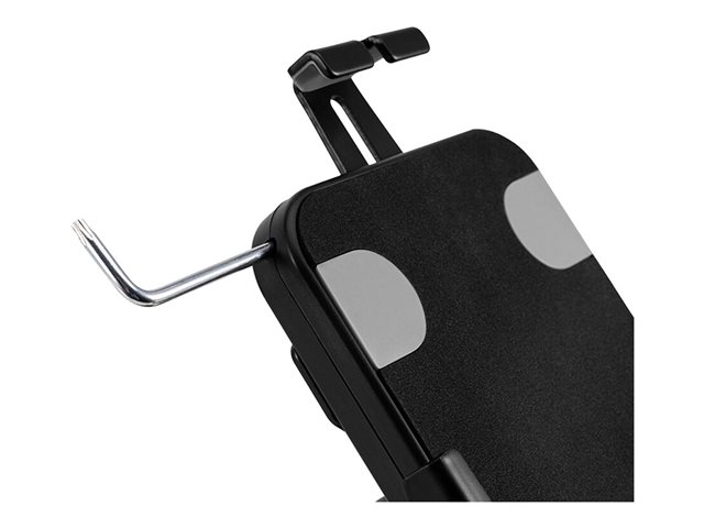 Držák tabletu je vybaven zámkem proti krádeži pro větší bezpečnost. Protiskluzové podložky chrání tablet před případným poškrábáním, zatímco výškově a šířkově nastavitelné svorky zajišťují bezpečné a pevné umístění zařízení. V horní části je výřez pro kameru tabletu. Instalace je tak snadná, jak jen může být, stačí k ní pouze jeden šroub. Držák WL15-625BL1 je vhodný pro tablety o tloušťce 0 - 8,5 mm.