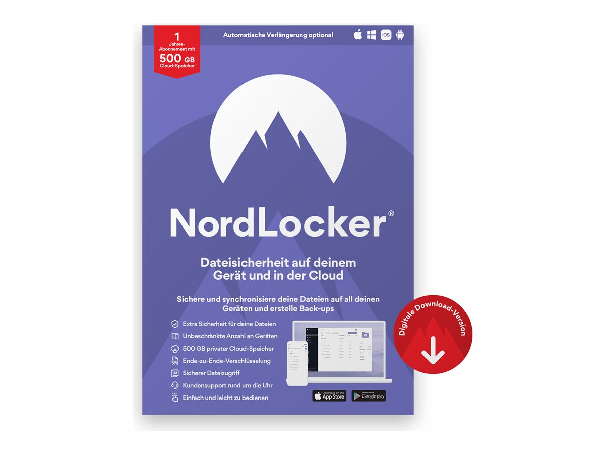| Popis výrobku | NordLocker - licence na předplatné (1 rok) - 500 GB úložný prostor |