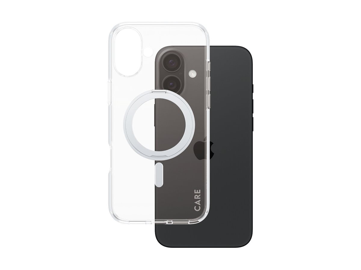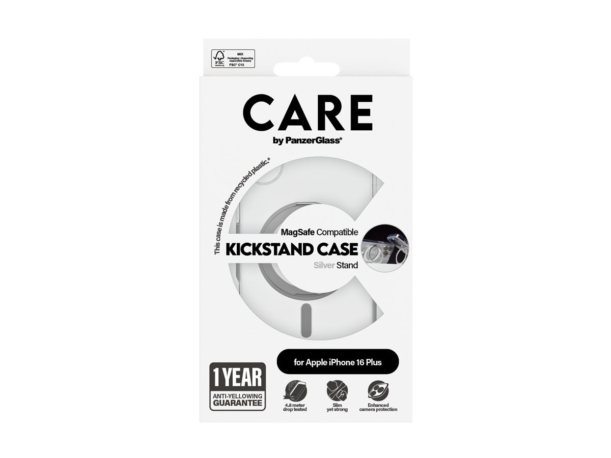 | PanzerGlass čirý kryt Apple iPhone 16 Plus s šedým MagSafe KickStand 360° otočným stojánkemn |
