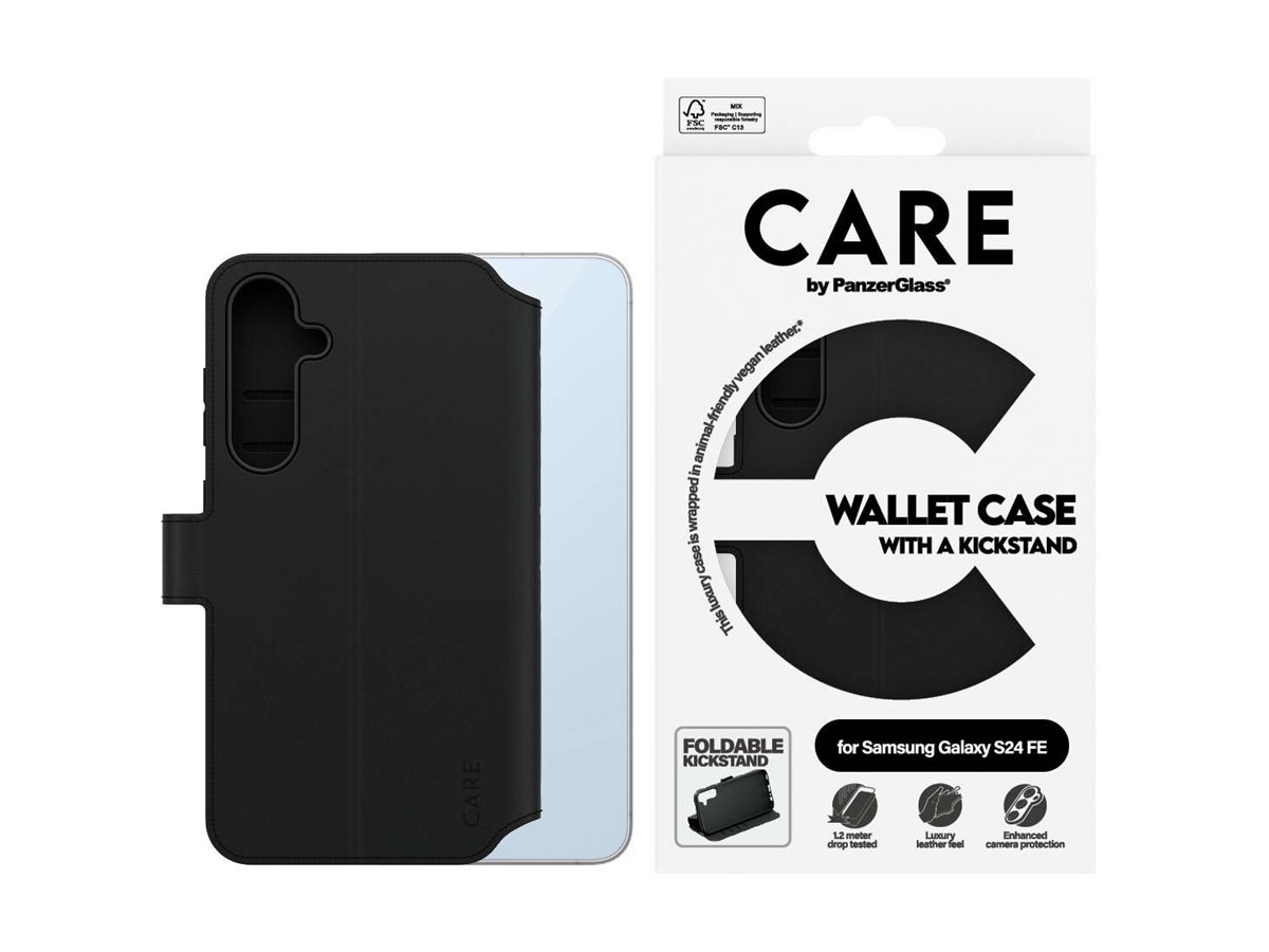Ochranný kryt CARE by PanzerGlass je určen pro uživatele mobilních telefonů, kteří hledají spolehlivou ochranu a funkčnost. Tento tenký flipový kryt je vyroben z materiálů bez obsahu zvířat, poskytuje zvýšenou ochranu fotoaparátu a je vybaven stojánkem pro větší pohodlí při sledování videí nebo videohovorech. Polyuretanová kůže a termoplastický polyuretan (TPU) zajišťují odolnost a stylový vzhled a zároveň chrání zařízení před poškrábáním, pády a nárazy s maximální výškou ochrany proti pádu 2,4 m. Další přihrádky na pero a slot na karty nabízejí praktické řešení pro uložení každodenních nezbytností.