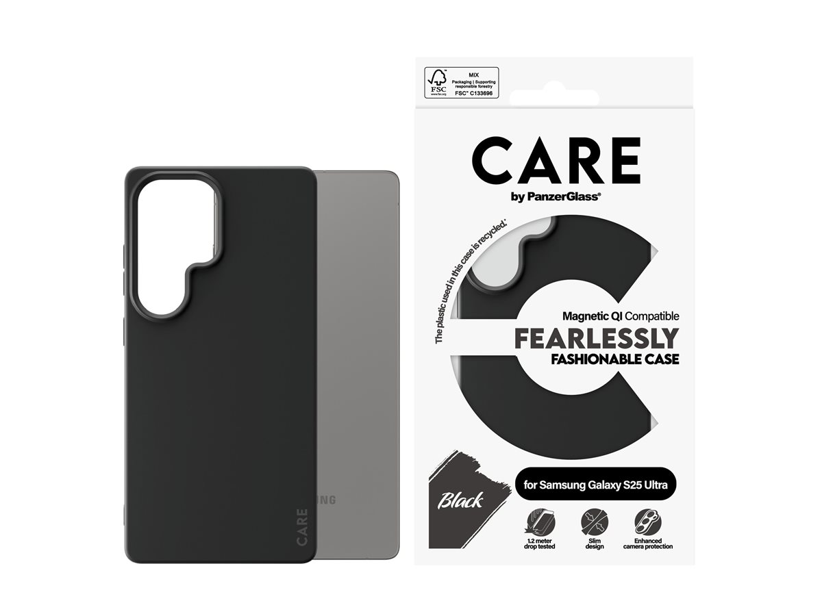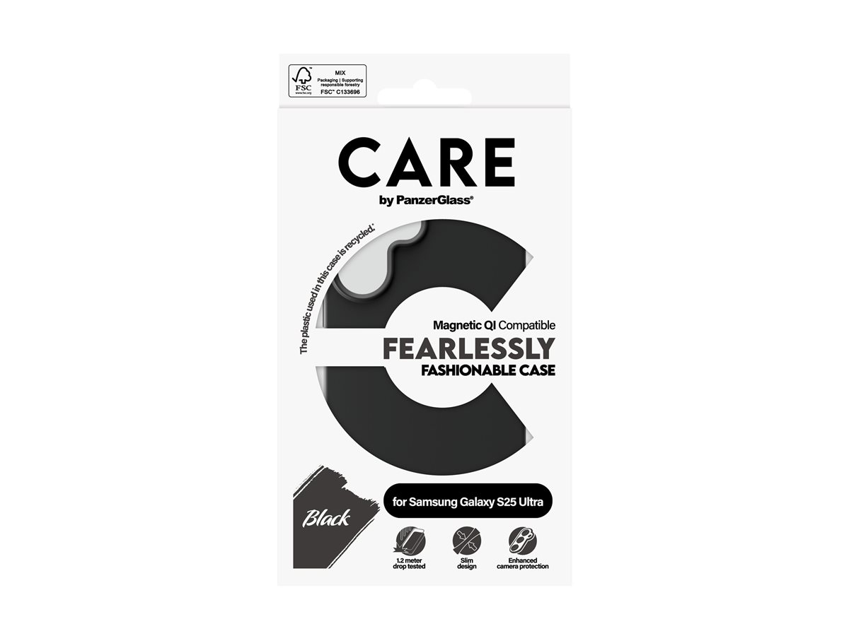 Ochranný kryt CARE by PanzerGlass je určen pro mobilní telefony a nabízí kombinaci stylu a funkčnosti. Je vyroben ze 100% recyklovaných materiálů, včetně polykarbonátu, silikonu a mikrovlákna, a představuje ekologickou volbu bez kompromisů v oblasti odolnosti. Díky tenkému designu se snadno drží a vestavěné magnety zajišťují bezpečné uchycení. Kryt je kompatibilní s technologií Qi, což umožňuje bezproblémové bezdrátové nabíjení.