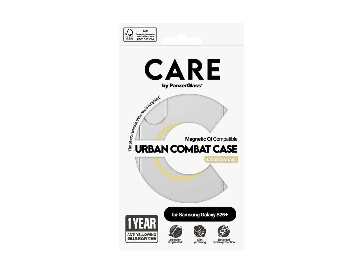 Ochranné pouzdro CARE by PanzerGlass Urban Combat nabízí odolnost pro mobilní telefony. Tento zadní kryt je vyroben z termoplastického polyuretanu (TPU) a poskytuje silnou ochranu proti poškrábání a zažloutnutí, čímž zajišťuje, že si telefon zachová svůj vzhled po dlouhou dobu. Díky schopnosti ochrany proti pádu z výšky až 4,8 m si uživatelé mohou být jisti, že je jejich zařízení chráněno před náhodnými pády a nárazy.
