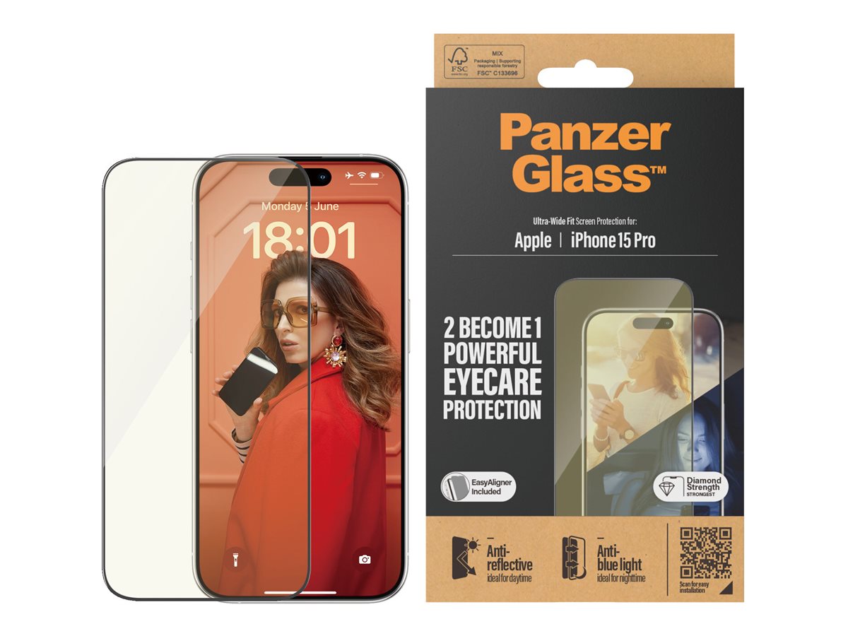 | PanzerGlass ochranné sklo Apple iPhone 15 Pro s filtrem proti modrému světlu a antireflexní úpravou |