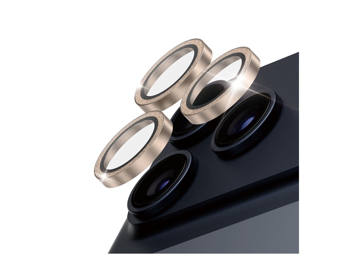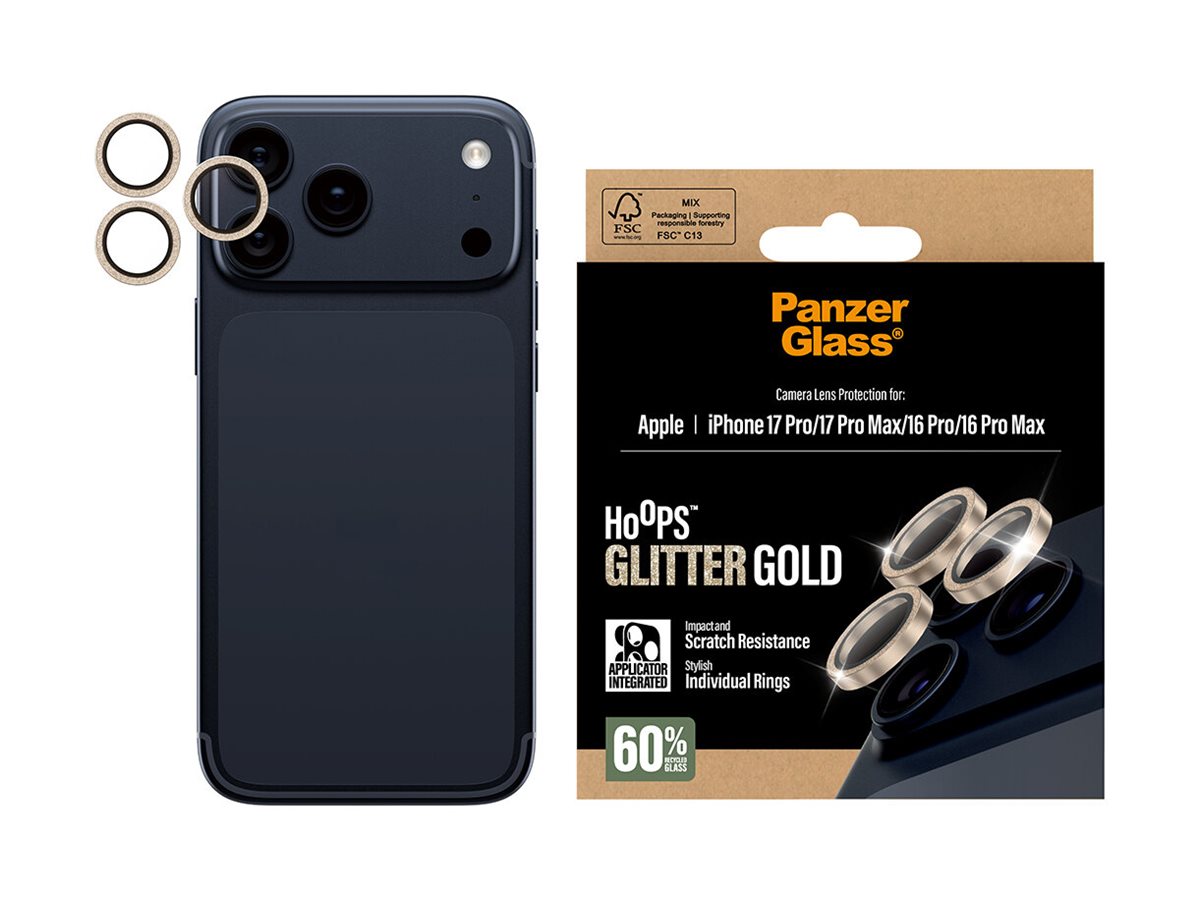 | PanzerGlass Hoops Apple iPhone 17 Pro/16 Pro/15 Pro/17 Pro Max/16 Pro Max/15 Pro Max třpytivě zlaté ochranné kroužky pro čočky fotoaparátu |