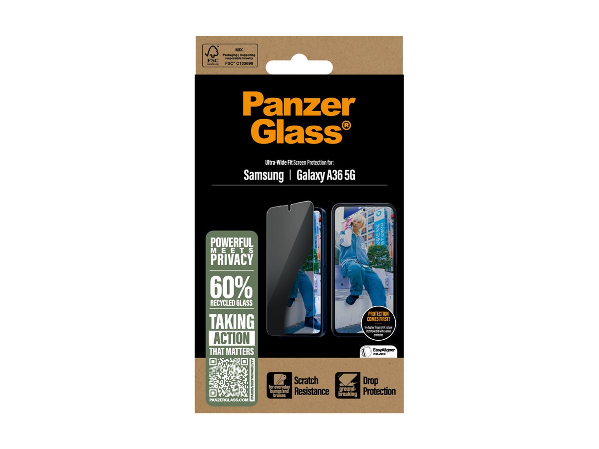 | PanzerGlass Privacy ochranné sklo Samsung Galaxy A36 5G s filtrem soukromí a instalačním rámečkem |