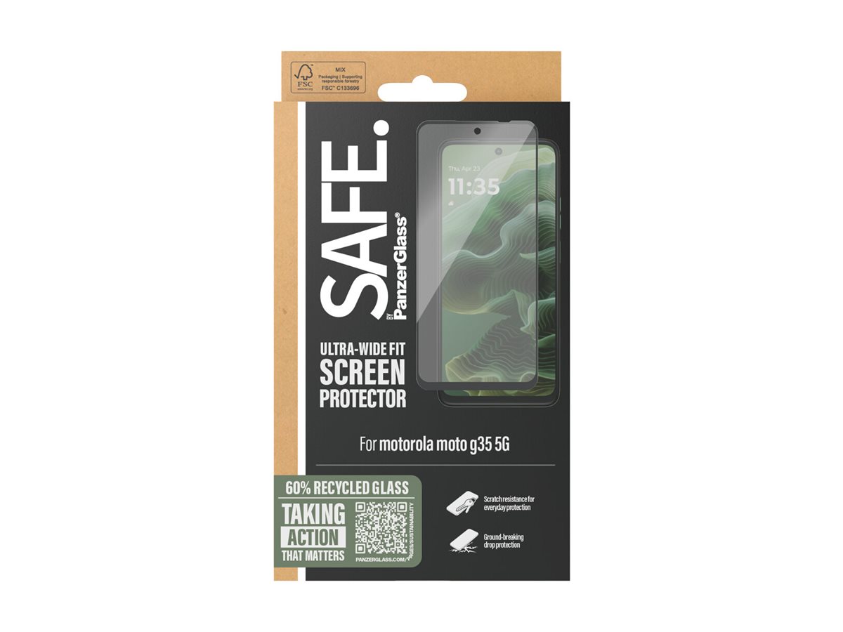 Ochranná fólie SAFE. od PanzerGlass je určena pro mobilní telefony a poskytuje ultraširoké pokrytí pro působivou ochranu. Tato ochranná fólie je vyrobena z kombinace tvrzeného skla a polyethylentereftalátu (PET), je odolná a šetrná k životnímu prostředí a obsahuje 60 % recyklovaného materiálu pocházejícího z recyklovaného skla. Díky černému rámečku tento ochranný film vylepšuje estetiku mobilních zařízení a nabízí ochranu, která zahrnuje odolnost proti poškrábání, odolnost proti šmouhám a ochranu proti pádům. Je navržen tak, aby odolával každodenním nástrahám, udržoval displeje v perfektním stavu a zároveň zajišťoval kompatibilitu s pouzdry na telefony.