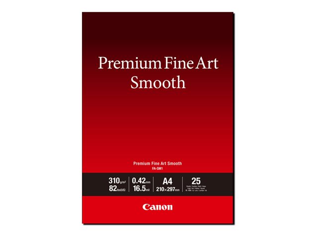 | Popis výrobku | Canon Premium Fine Art Smooth FA-SM2 - fotografický papír - hladký - 25 listy - A3 Plus - 310 g/m² |