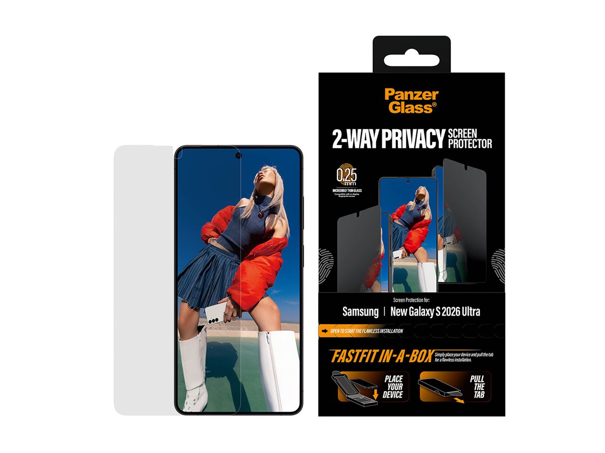 | PanzerGlass Privacy Samsung Galaxy S26 Ultra s bezprašným aplikačním boxem |