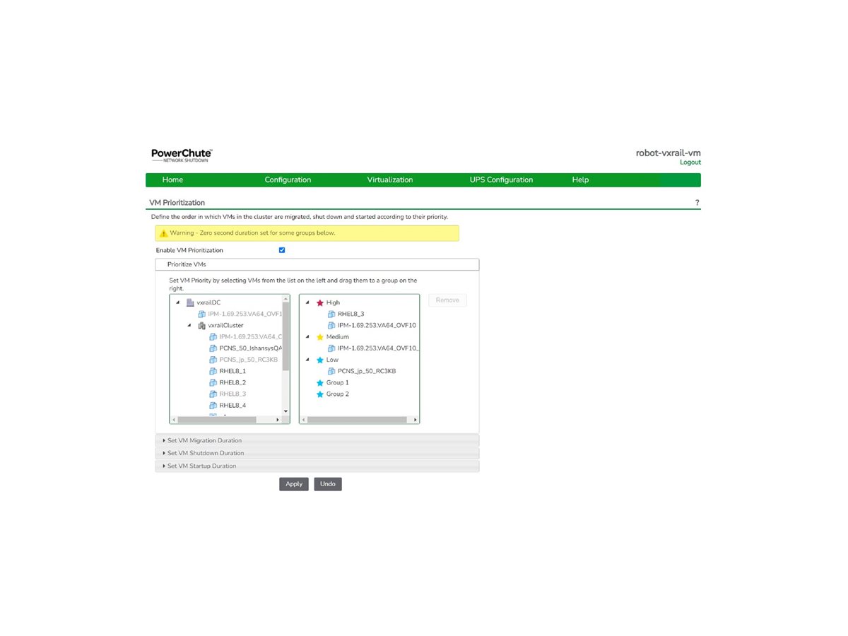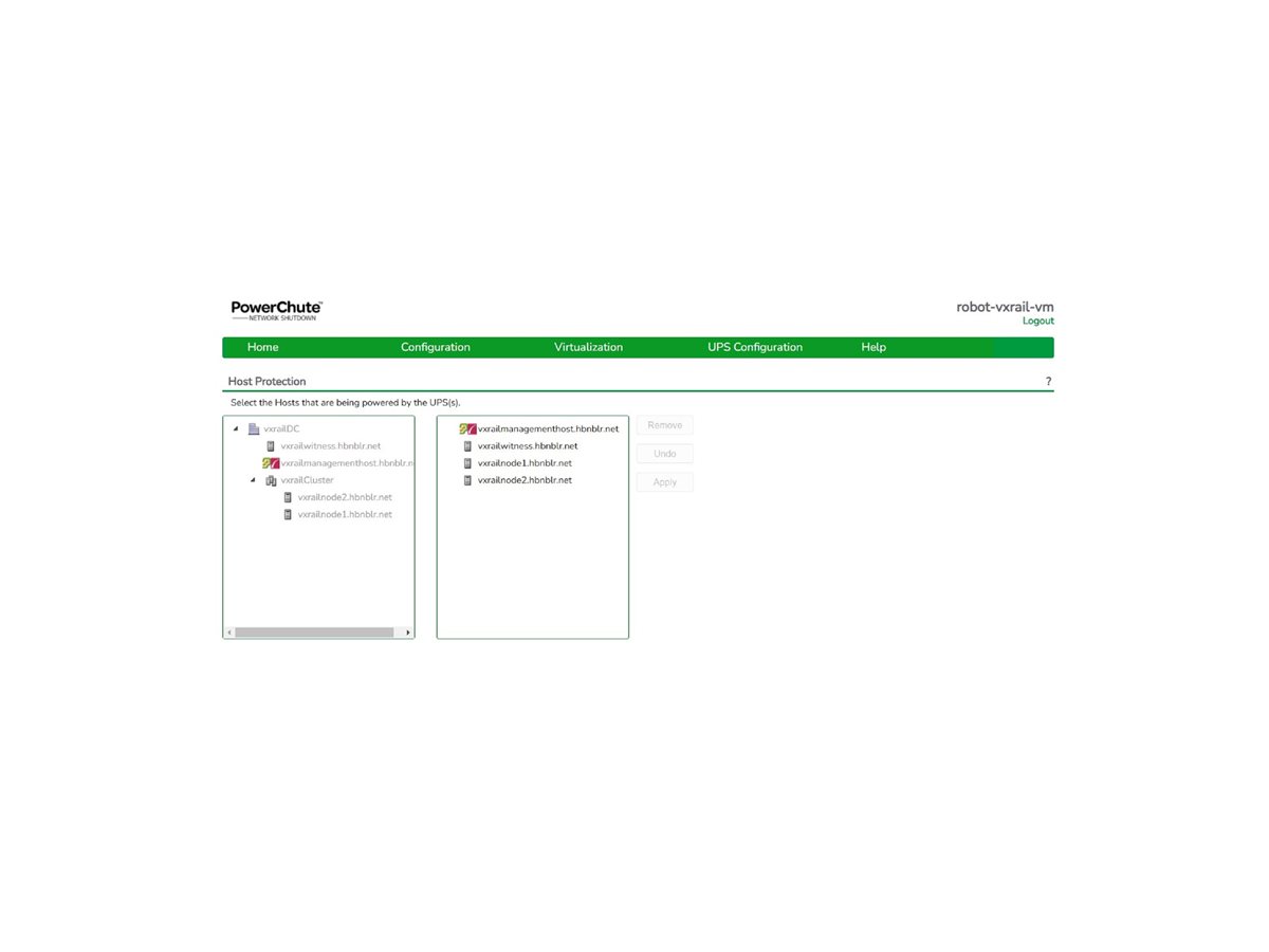 PowerChute Network Shutdown funguje ve spojení s kartou APC UPS Network Management Card a chrání vaše fyzické a virtuální IT prostředí před ohrožením dostupnosti IT. Síťové, plynulé a bezobslužné vypínání fyzických serverů a virtuálních počítačů chrání integritu dat a snižuje prostoje systému v případě kritických událostí, jako jsou delší výpadky napájení. Jeho škálovatelná architektura může podporovat prakticky neomezený počet klientských systémů. PowerChute Network Shutdown je snadno konfigurovatelný prostřednictvím rozhraní prohlížeče a podporuje konfigurace s jedním, redundantním a paralelním UPS.