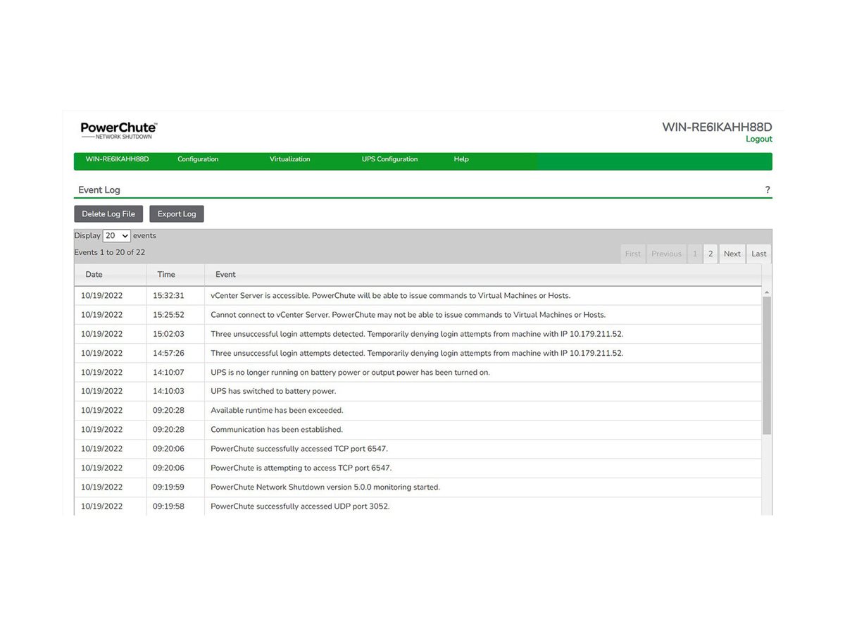 PowerChute Network Shutdown hraje klíčovou roli tím, že umožňuje bezobslužné plynulé vypnutí IT infrastruktury během neočekávaných událostí napájení.