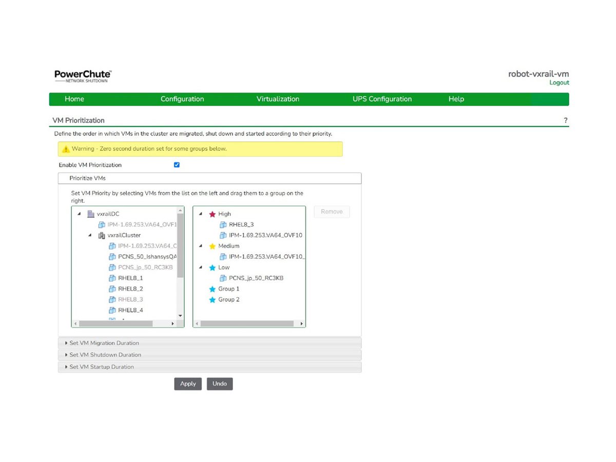 Pro zvýšení odolnosti může PowerChute iniciovat migraci virtuálních počítačů a bezobslužné spuštění, aby se maximalizovala doba provozu.