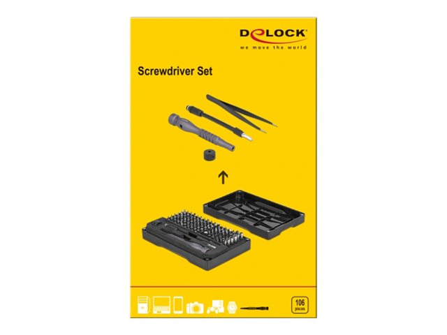 Delock - rukojeť přesného šroubováku se sadou bitů a držáků - 106 kusy |