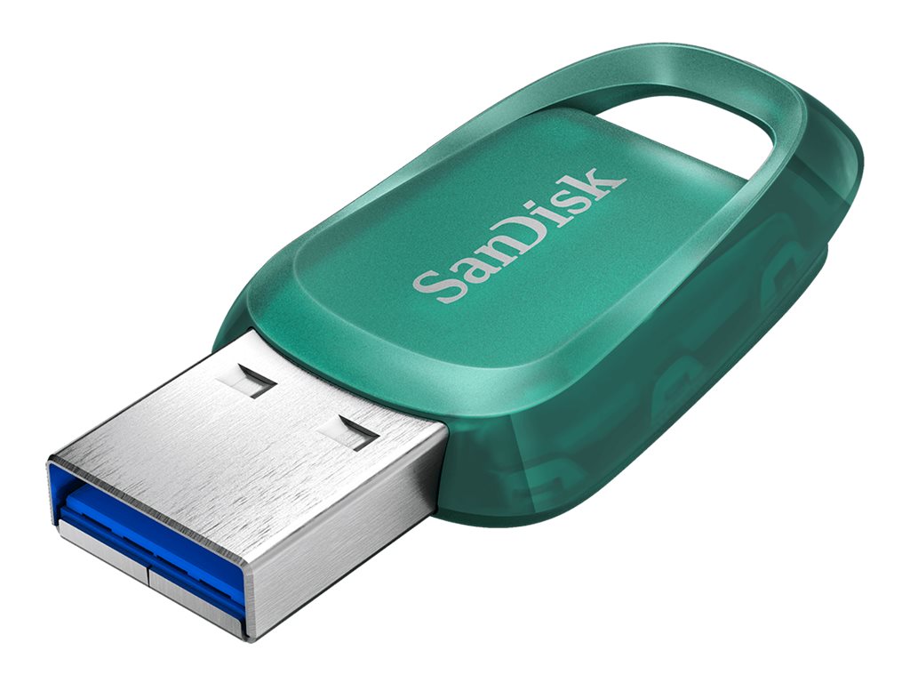 Flash disk SanDisk Ultra Eco je navržen s ohledem na naši planetu a je vyroben z více než 70 % z recyklovaného plastu, například z jednorázových lahví na vodu. Tím se během výrobního procesu ušetří více než 50 % emisí CO2, sladké vody a energie. A díky kapacitě až 512 GB a časově úsporné přenosové rychlosti až 100 MB/s můžete rychle uložit více toho, co je nejdůležitější.