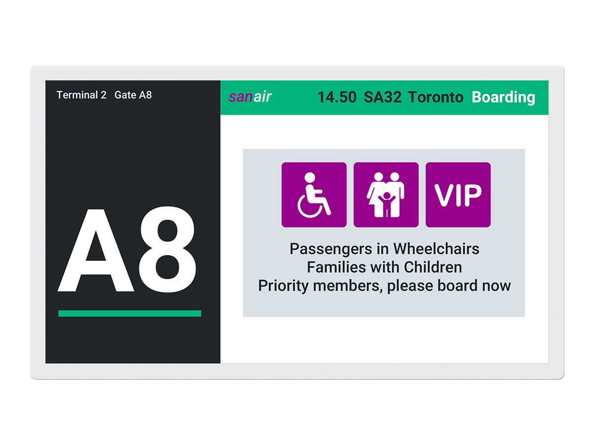 Díky robustní konstrukci pro nepřetržitý provoz a prostoru pro externí baterii je zkonstruován tak, aby poskytoval nepřetržitý a spolehlivý výkon v různých prostředích. Díky nulové spotřebě energie pro statický obraz a vysoce účinnému napájecímu adaptéru je displej ekologickou volbou pro podniky, které chtějí snížit svou energetickou stopu.