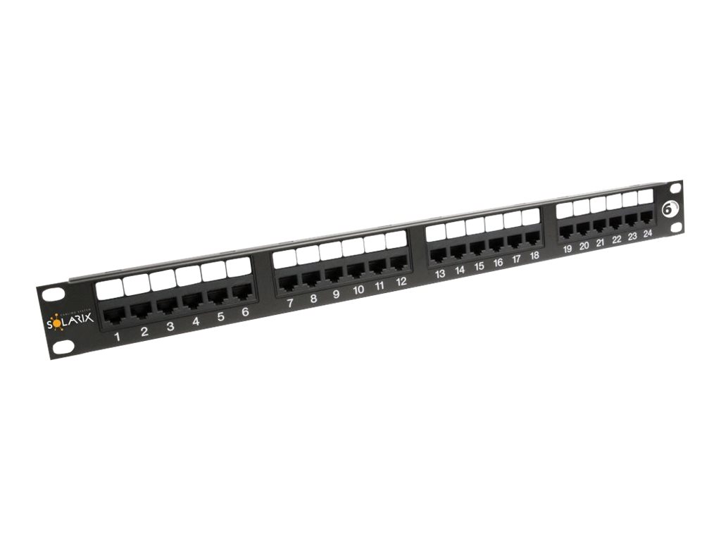 | Solarix 19" Patch panel UTP 24xRJ45 CAT6 350Mhz 1U černý |
