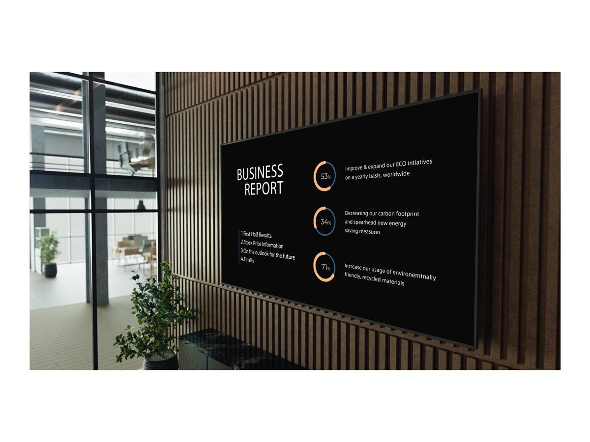 Tento displej je navržen s ohledem na profesionální prostředí, podporuje 24hodinový provoz a je vybaven softwarem BRAVIA Signage Free, takže je ideální volbou pro podniky, které hledají spolehlivé a vysoce kvalitní řešení digitální reklamy. Ať už se jedná o zasedací místnost, vstupní halu nebo prodejní prostory, displej Sony Bravia FW-98BZ53L díky své špičkové zobrazovací technologii a chytrým funkcím obohatí jakýkoli obsah.