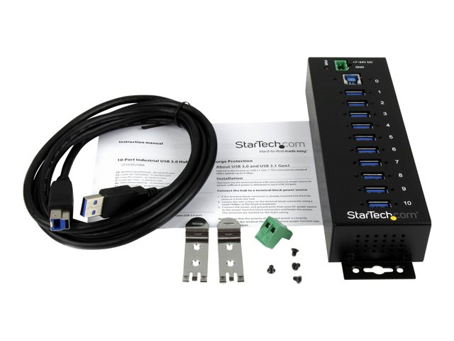 | Popis výrobku | StarTech.com 10-Port USB 3.0 Hub - Metal Industrial USB-A Hub with ESD & Surge Protection - Din Rail, Wall or Desk Mountable - TAA Compliant USB Expander Hub (ST1030USBM) - rozbočovač - 10 porty |