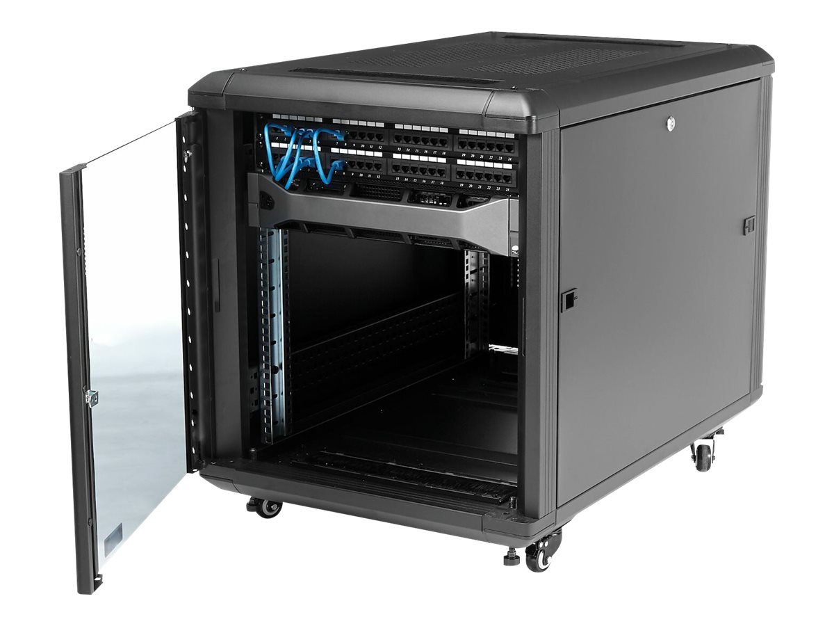 12U AV racková skříň od společnosti StarTech.com je navržena tak, aby splňovala požadavky serveroven a kancelářských prostředí. Tato racková skříň je vyrobena z kombinace hliníku a oceli a poskytuje odolnost a stabilitu. S výškou 12 rackových jednotek a nosností 800 kg pojme různé zařízení a zároveň zajišťuje bezpečnost a soulad s normami, jako jsou RoHS, IEC 297-2 a DIN 41491 část 1. Přední dvířka se skleněným okénkem zlepšují viditelnost a zajišťují bezpečnost díky uzamykatelné funkci, zatímco zadní dvířka ze síťoviny umožňují optimální proudění vzduchu skříní a udržují zařízení v chladu během provozu. Skříň je namontována na kolečkách, což umožňuje snadnou mobilitu v případě potřeby.