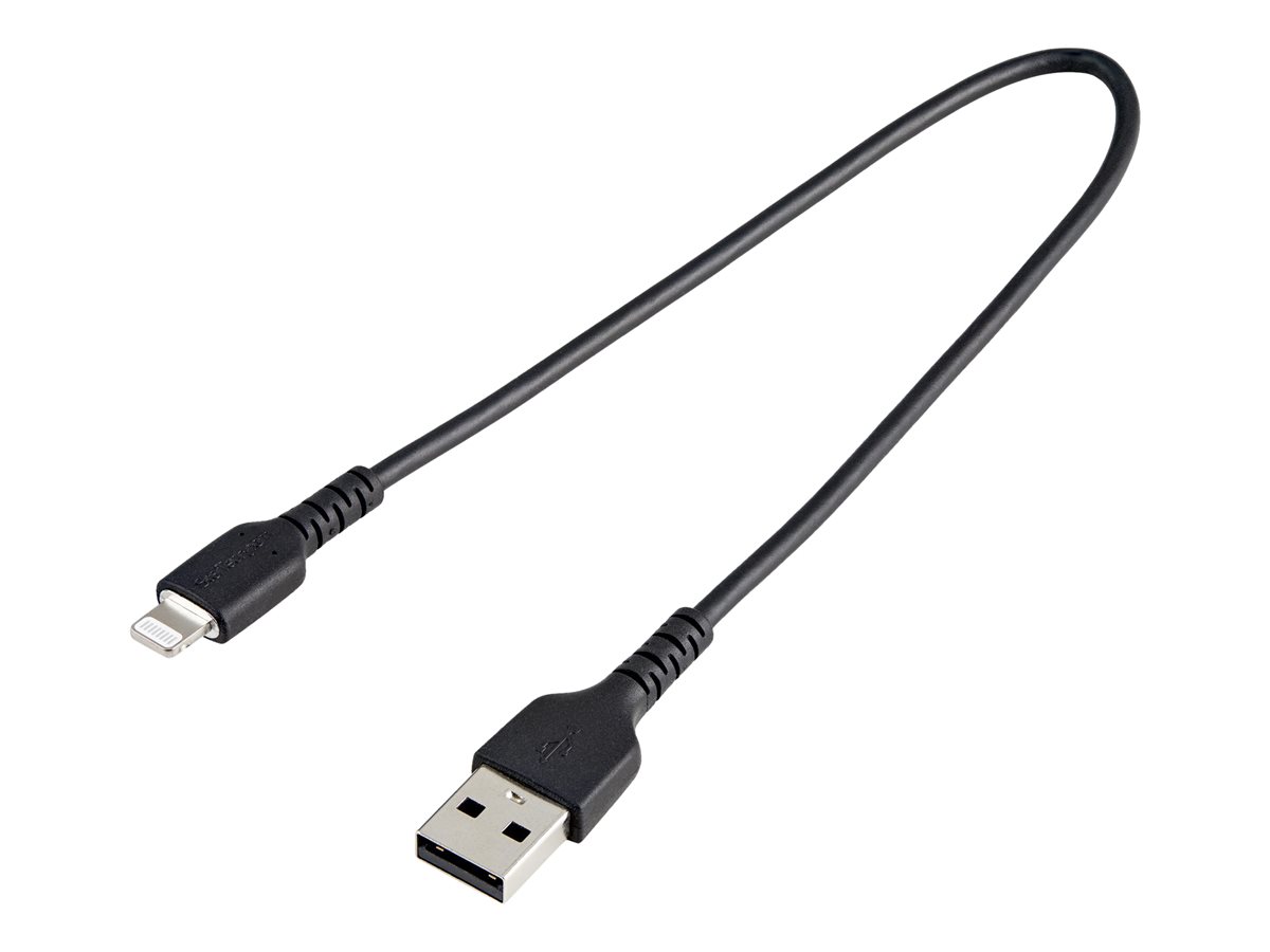 | Popis výrobku | StarTech.com 12 in(30cm) Durable Black USB-A to Lightning Cable, Heavy Duty Rugged Aramid Fiber USB Type A to Lightning Charger/Sync Power Cord, Apple MFi Certified iPad/iPhone 12 Pro Max - iPhone 7/8/11/11 Pro - kabel Lightning - Lightning / USB - 30 cm |