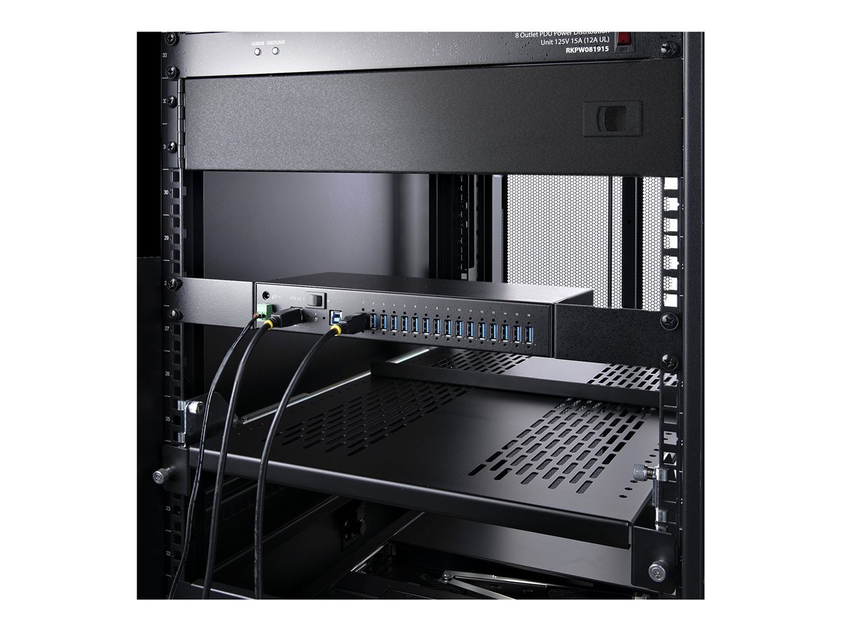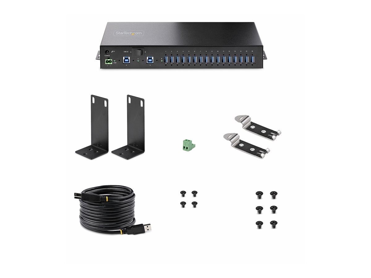 | Popis výrobku | StarTech.com 16-Port Industrial USB 3.0 Hub 5Gbps, Metal, DIN/Surface/Rack Mountable, ESD Protection, Terminal Block Power, up to 120W Shared USB Charging, Dual-Host Hub/Switch (5G16AINDS-USB-A-HUB) - rozbočovač - průmyslový - 16 porty - Lze montovat do rozvaděče |