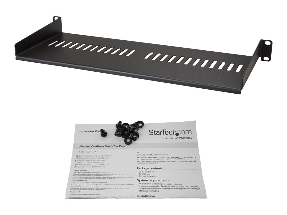 | Popis výrobku | StarTech.com 1U Vented Server Rack Cabinet Shelf, 7in Deep Fixed Cantilever Tray, Rackmount Shelf for 19" AV/Data/Network Equipment Enclosure w/ Cage Nuts & Screws, 44lbs Weight Capacity - 1U Vented Rack Shelf (CABSHELF1U7V) - police skříně - 1U |