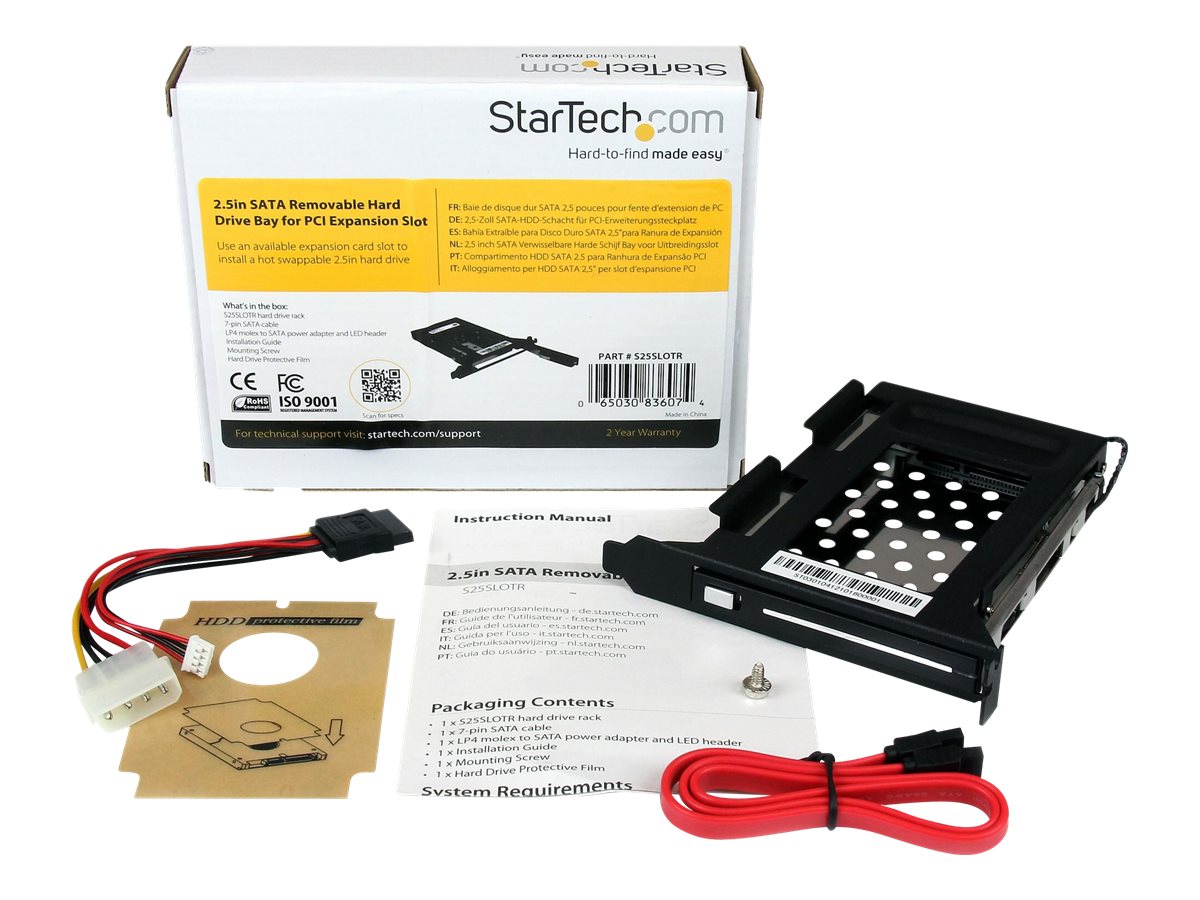 | Popis výrobku | StarTech.com 2.5in SATA Removable Hard Drive Bay for PC Expansion Slot - Storage bay adapter - black - S25SLOTR - bay adaptér pro datový sklad |