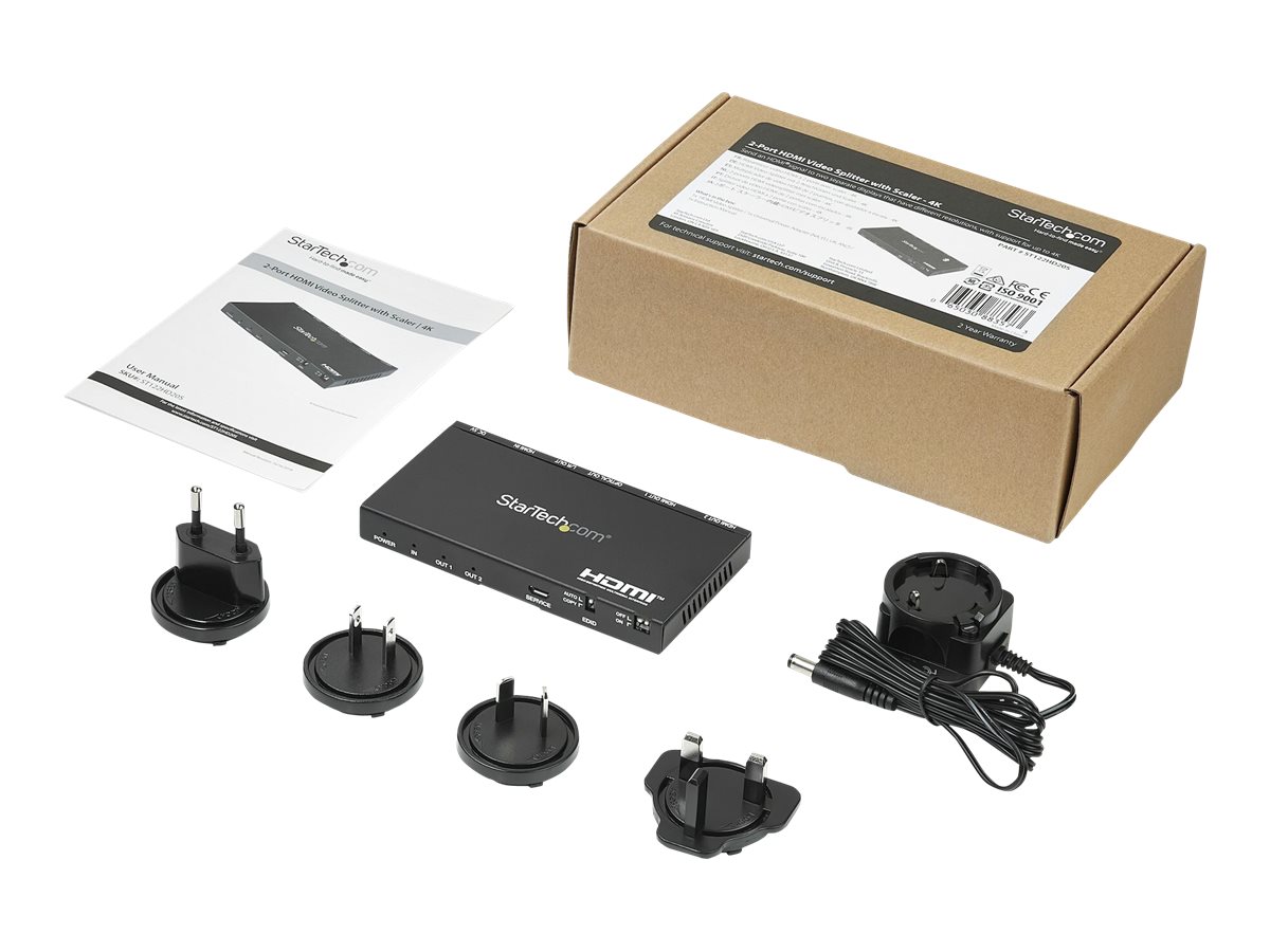 | Popis výrobku | StarTech.com 2-Port HDMI Splitter (1x2), 4K 60Hz UHD HDMI 2.0 Audio Video Splitter w/ Scaler & Audio Extractor (3.5mm/SPDIF), Dual HDMI Splitter (1-In 2-Out), EDID Copy, TV/Projector - Supports HDCP 2.2 (ST122HD20S) - rozdělovač video / audio - 2 porty |