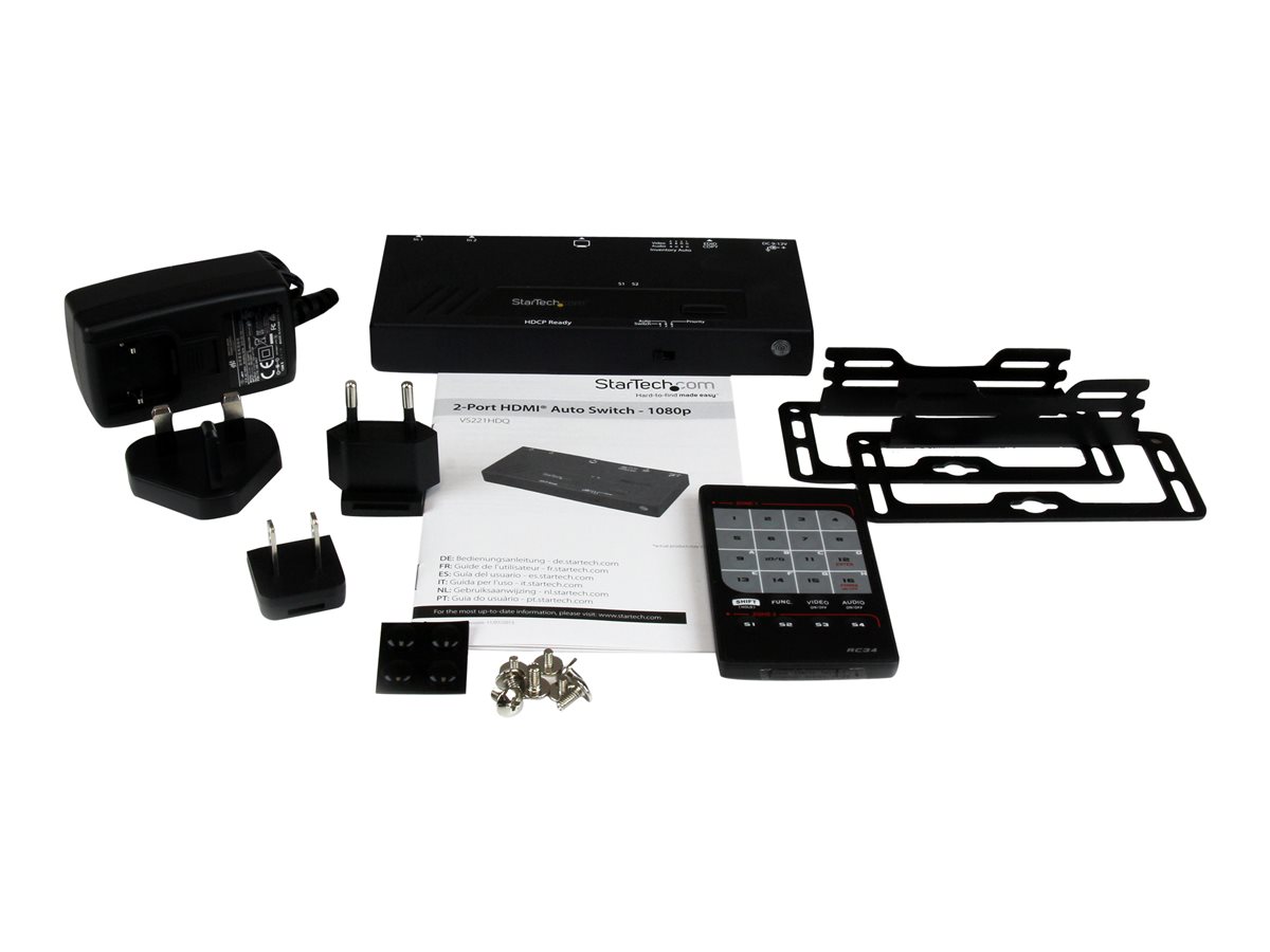 | Popis výrobku | StarTech.com 2 Port HDMI Switch w/ Automatic and Priority Switching - 2 In 1 Out HDMI Selector with Automatic Priority Switching - 1080p (VS221HDQ) - spínač video/audio - 2 porty |