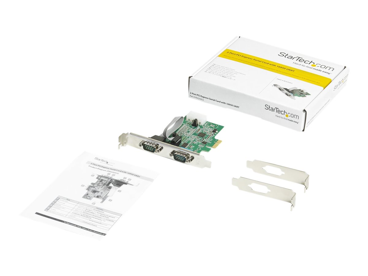 | Popis výrobku | StarTech.com 2-port PCI Express RS232 Serial Adapter Card, PCIe RS232 Serial Host Controller Card, PCIe to Dual Serial DB9 COM Port Card, 16950 UART, Expansion Card, Windows, macOS, Linux - Full/Low-Profile (PEX2S953) - sériový adaptér - PCIe - RS-232 x 2 |
