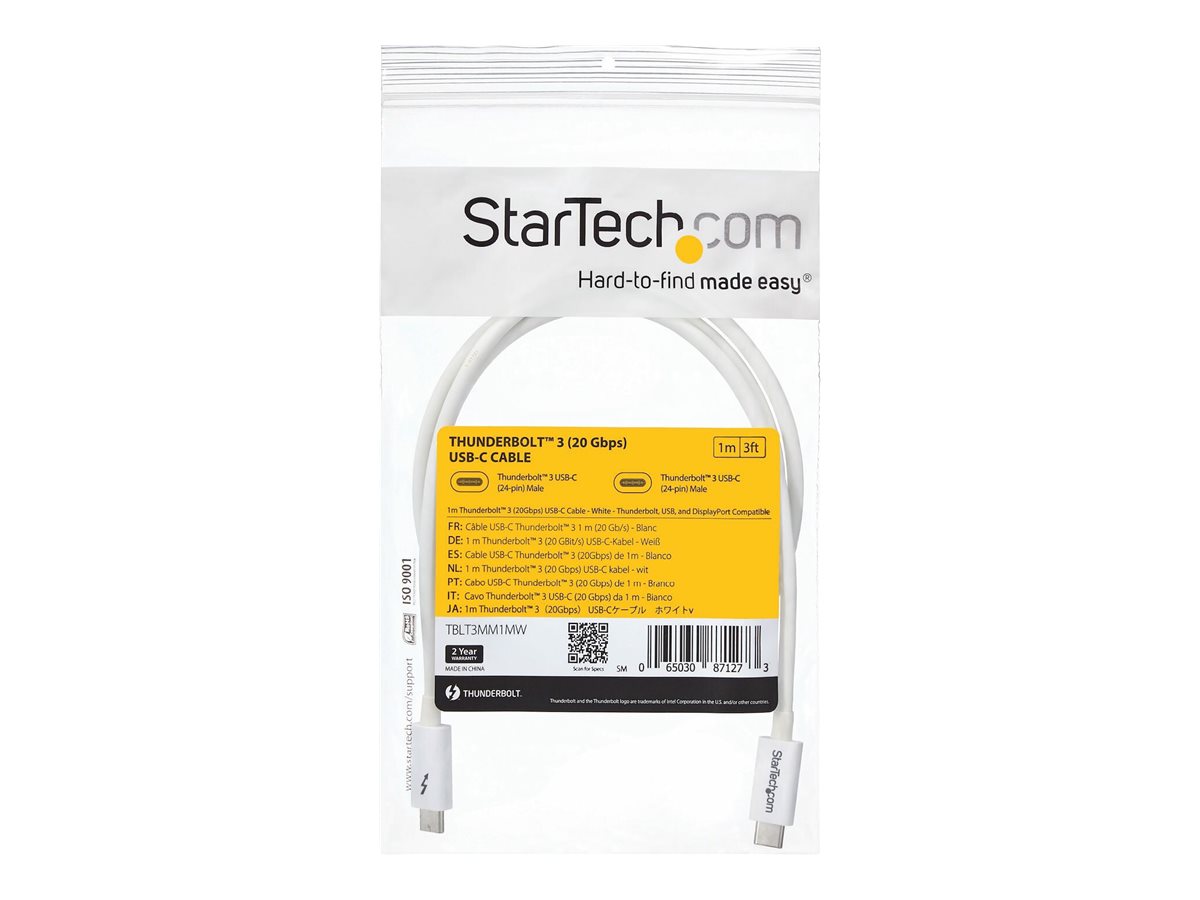 | Popis výrobku | StarTech.com 3.3ft (1m) Thunderbolt 3 Cable, 20Gbps, 100W PD, 4K Video, Thunderbolt-Certified, Compatible w/ TB4/USB 3.2/DisplayPort - kabel Thunderbolt - USB-C do USB-C - 1 m |