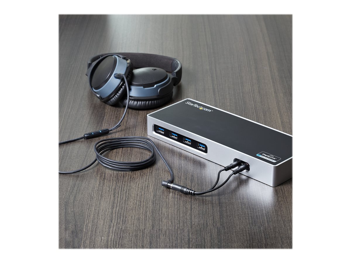 Rozbočovač sluchátek StarTech.com 3,5 mm 4 pozice na 2x 3 pozice 3,5 mm umožňuje připojení dvou sluchátek k jednomu zdroji zvuku. Díky stereofonním konektorům mini-phone 3,5 mm rozděluje adaptér zvukový výstup na dva samostatné kanály, takže je vhodný pro sdílení hudby a médií s přáteli nebo kolegy. PVC plášť zajišťuje odolnost a ponikrované konektory dobrý přenos signálu. Tento adaptér splňuje normy RoHS a je tedy šetrný k životnímu prostředí.