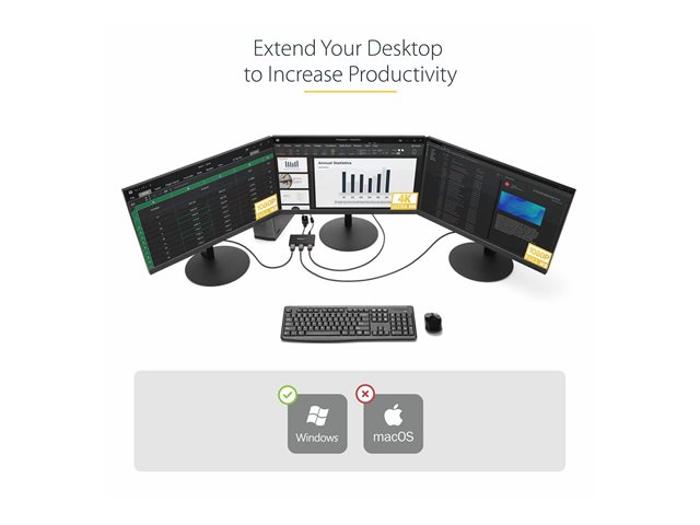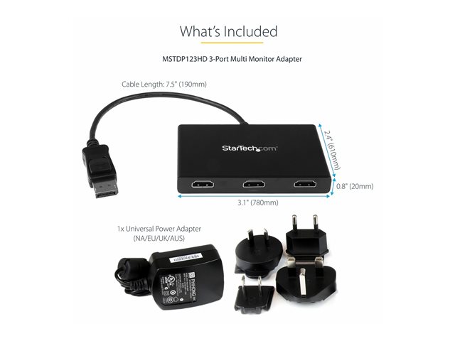 StarTech.com 3-Port Multi Monitor Adapter, DisplayPort 1.2 to HDMI MST Hub, Triple 1080p HDMI Monitor, Video Splitter for Extended Desktop Mode on Windows PCs Only, DP to 3x HDMI MST Hub - Multi Stream Transport (MSTDP123HD) - rozdělovač video / audio - 3 porty