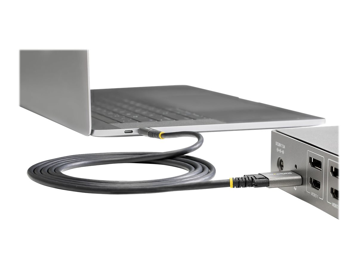 3ft 1m USB C kabel se bočním šroubovým uzávěrem od StarTech.com nabízí spolehlivé připojení a robustní konstrukci. Tento kabel splňuje normy USB 3.2 Gen 2 a poskytuje rychlost přenosu dat až 10 Gb/s, což je vhodné pro náročné aplikace. Díky kompatibilitě s DisplayPort 1.4 a Thunderbolt 3 podporuje rozlišení až 4K.