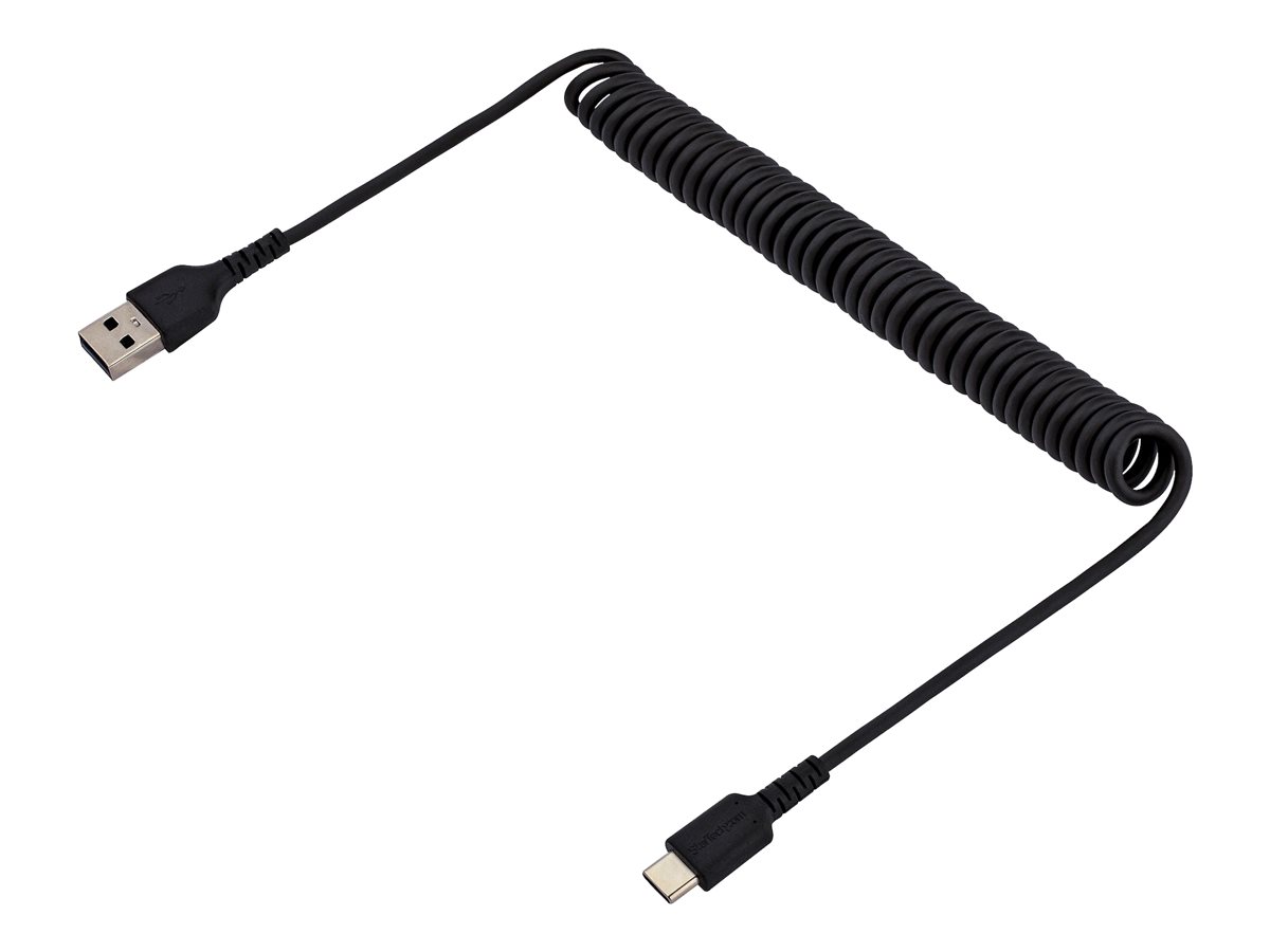 | Popis výrobku | StarTech.com 3ft (1m) USB A to C Charging Cable, Coiled Heavy Duty Fast Charge & Sync USB-C Cable, High Quality USB 2.0 A to Type-C, Rugged Aramid Fiber, TPE, 3A, S20, iPad, Pixel - Durable Male to Male USB, Black - USB kabel typ C - USB do USB-C - 1 m |