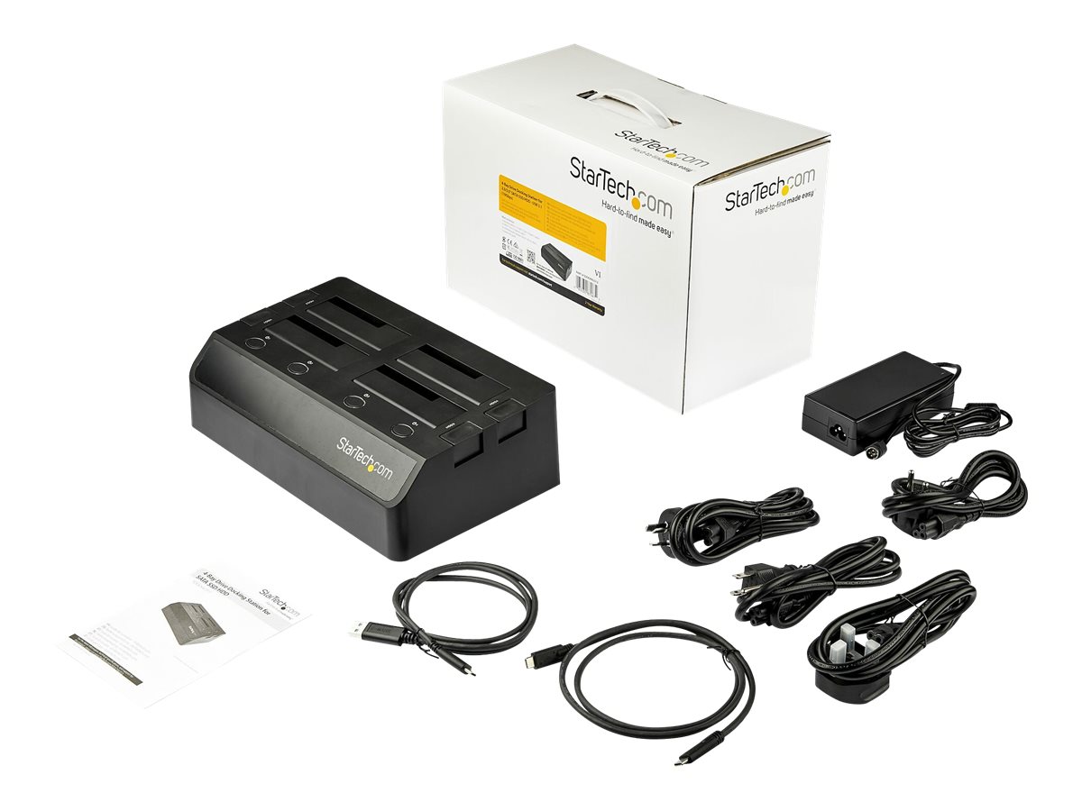 | Popis výrobku | StarTech.com 4-Bay USB 3.1 to SATA Hard Drive Docking Station, 10Gbps USB Hard Drive Dock, External 2.53.5 SATA III (6Gbps) SSDHDD Docking Station, Hot-Swap Hard Drive Bay - Dual 60mm Fans, Top-Loading - kryt úložiště - SATA 6Gb/s - USB 3.1 (Gen 2) |