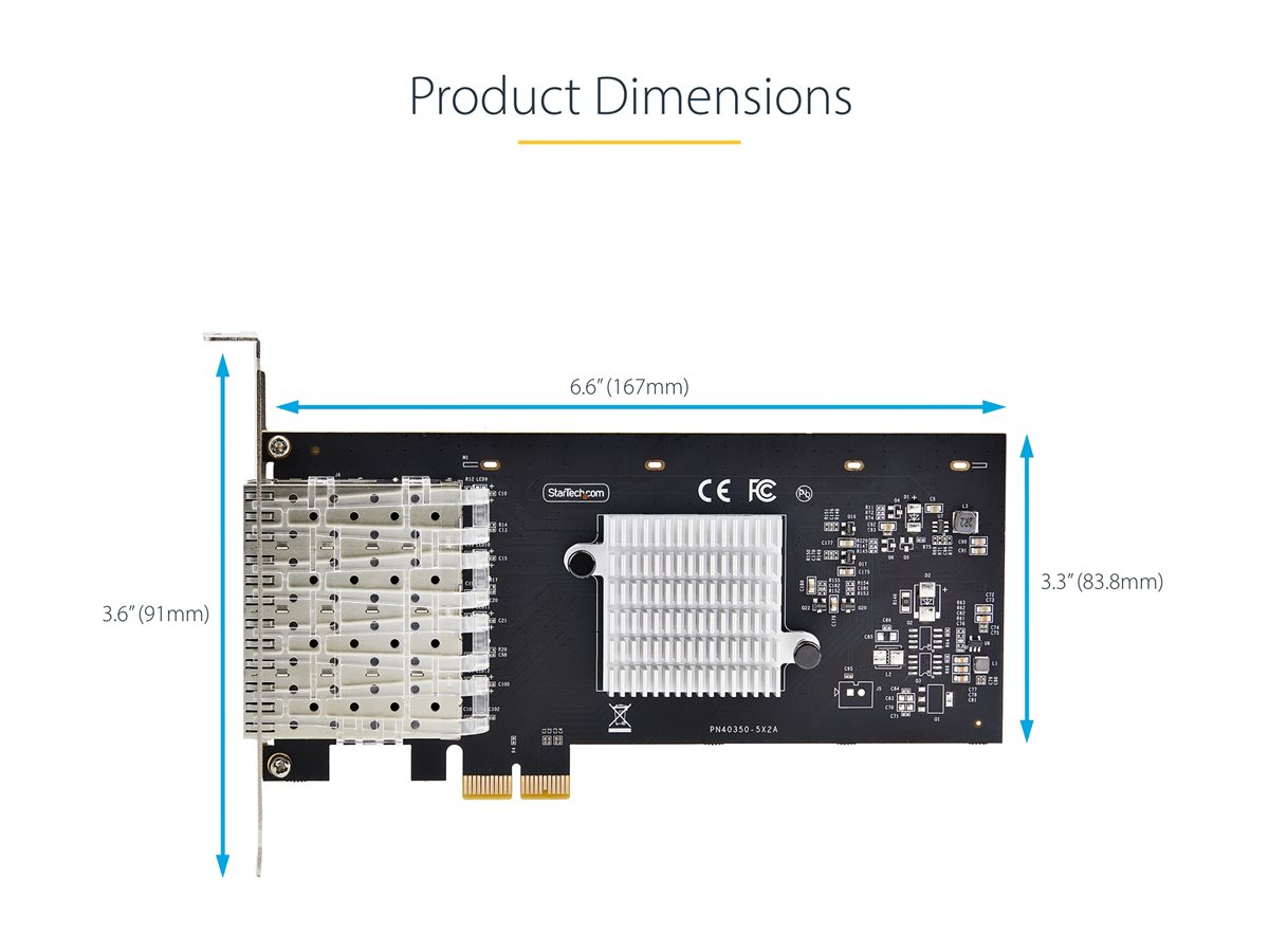 StarTech.com 4-Port GbE SFP Network Card, PCIe 2.0 x2, Intel I350-AM4 4x 1GbE Controller, 1000BASE Copper/Fiber Optic, Quad-Port Gigabit Ethernet NIC, Desktop/Server Backplanes - Windows and Linux Compatible (P041GI-NETWORK-CARD) - síťový adaptér - PCIe 2.0 x2 - Gigabit SFP x 4 |