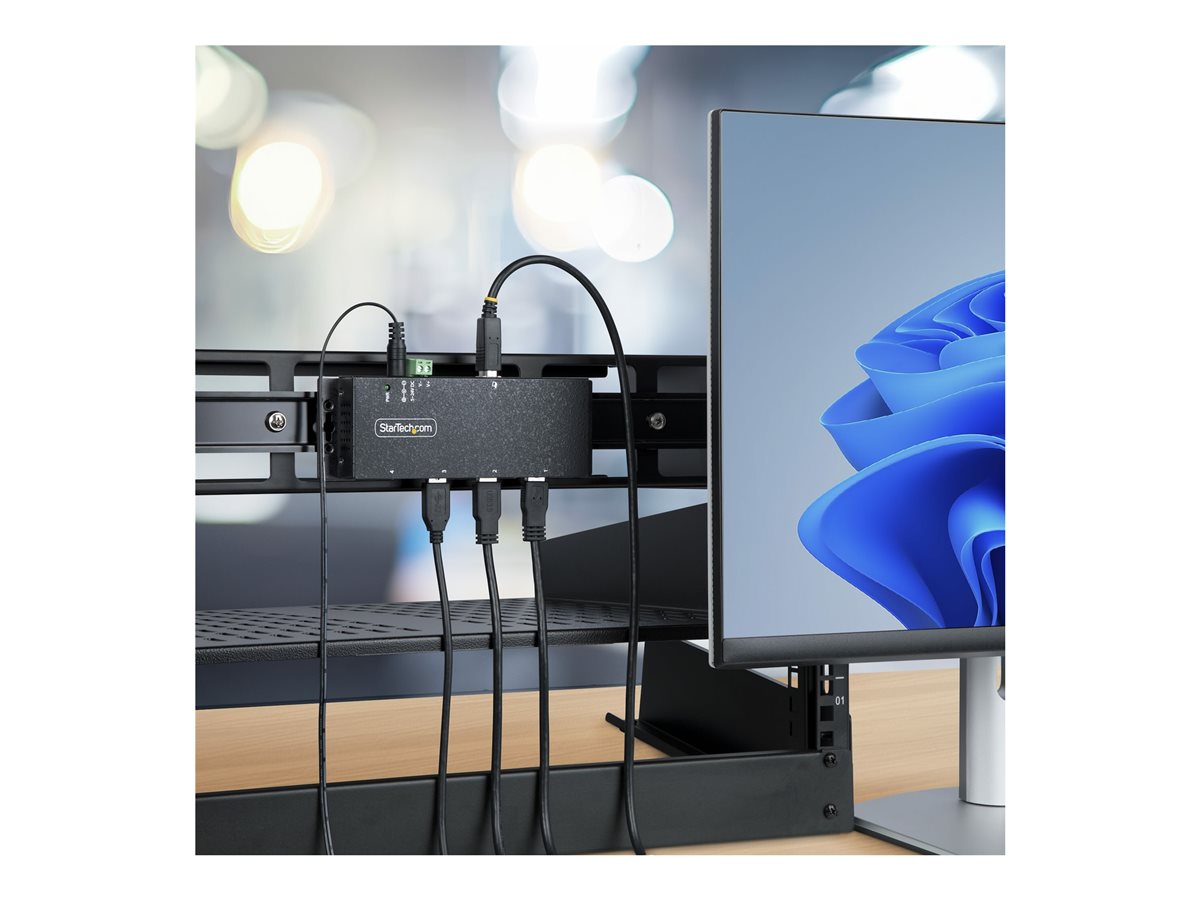 4portový průmyslový rozbočovač USB 3.0 5 Gb/s od společnosti StarTech.com představuje řešení pro rozšíření USB konektivity v náročných prostředích. Díky čtyřem portům USB 3.2 Gen 1 zajišťuje tento rozbočovač vysokorychlostní přenos dat až 5 Gb/s. Je navržen pro dlouhou životnost a disponuje odolným ocelovým pouzdrem a šroubovým uzávěrem, který chrání připojení před náhodným odpojením v průmyslových aplikacích. Integrovaná montážní konzola umožňuje různé možnosti instalace, takže je vhodný pro stolní, DIN lištu nebo montáž na zeď.