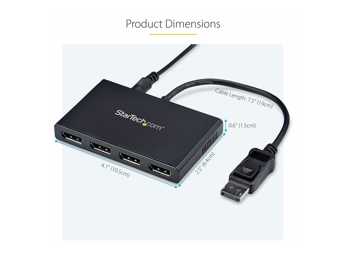 StarTech.com 4-Port Multi Monitor Adapter, DisplayPort 1.2 MST Hub, 4x 1080p, Video Splitter for Extended Desktop Mode on Windows PCs Only, DP to Quad DP Monitors MST Hub - DP Multi Stream Transport Hub (MSTDP124DP) - separátor video - 4 porty