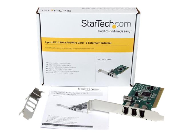 | Popis výrobku | StarTech.com 4 port PCI 1394a FireWire Adapter Card - 3 External 1 Internal FireWire PCI Card for Laptops (PCI1394MP) - Adaptér firewire - PCI - 3 porty |