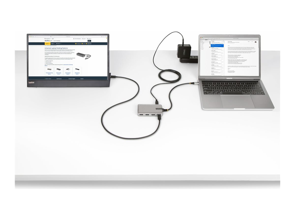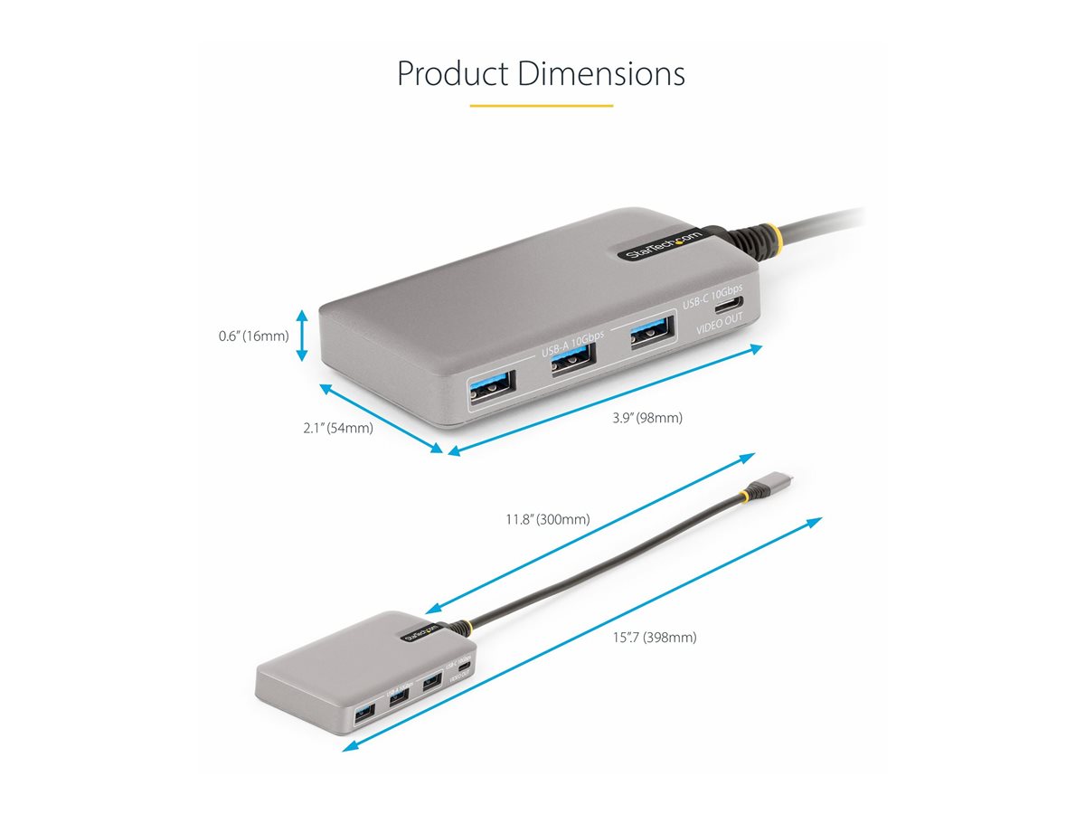 | Popis výrobku | StarTech.com 4-Port USB-C Hub with USB-C DP Alt Mode Video Output 4K 60Hz, 3x USB-A, 1x USB-C, 100W Power Delivery Pass-Through, USB 3.2 Gen 2 (10Gbps), Portable USB Type-C to USB Type-A/C - 1ft (30cm) Host Cable (HB31C3A1CDPPD3) - rozbočovač - 4 porty |