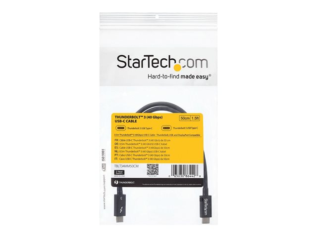 | Popis výrobku | StarTech.com 50cm (1.6ft) Thunderbolt 3 Cable, 40Gbps, 100W PD, 4K/5K Video, Thunderbolt-Certified, Compatible w/ TB4/USB 3.2/DisplayPort - kabel Thunderbolt - USB-C do USB-C - 50 cm |