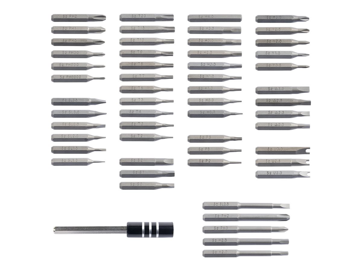 | Zahrnuté příslušenství | 55 šroubovacích bitů, magnetická pracovní podložka, prodlužovač bitů, magnetizér/demagnetizér |