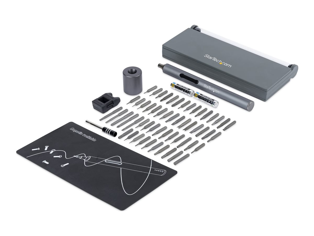 | Popis výrobku | StarTech.com 55-Bit Electric Precision Screwdriver Set - Portable Cordless Battery Powered Bit Driver Kit for Electronics, Laptop, Computers, Tablet & Phone Repairs - Magnetic Work Pad elektrický přesný šroubovák - aku - 2 baterie |