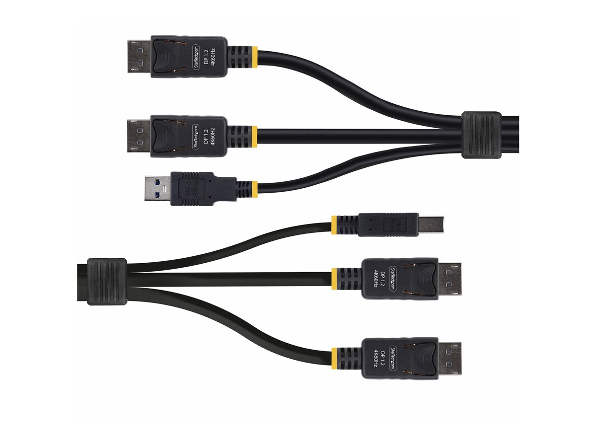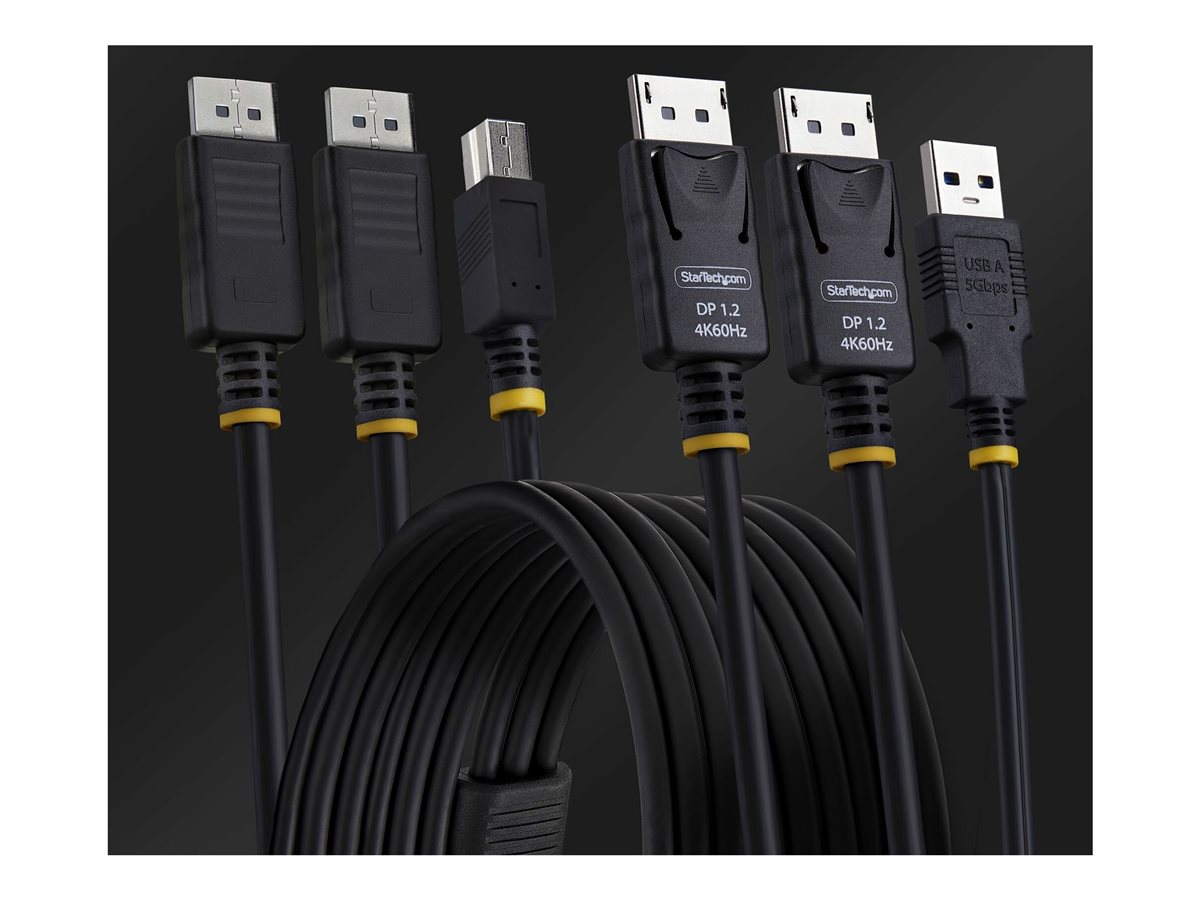 Kabel KVM s dvojitým DisplayPortem a USB 5 Gbps o délce 1,8 m od společnosti StarTech.com poskytuje plynulé připojení klávesnice, videa a myši a podporuje funkce pro vysoký výkon. Díky rychlosti přenosu dat až 5 Gbps a kompatibilitě s USB 3.2 Gen 1 a DisplayPort 1.2 zajišťuje tento kabel vysoce kvalitní přenos dat a video výstup. Podporuje rozlišení 4K při 60 Hz a HDR10, takže je vhodný pro displeje s vysokým rozlišením a bohatými barvami.